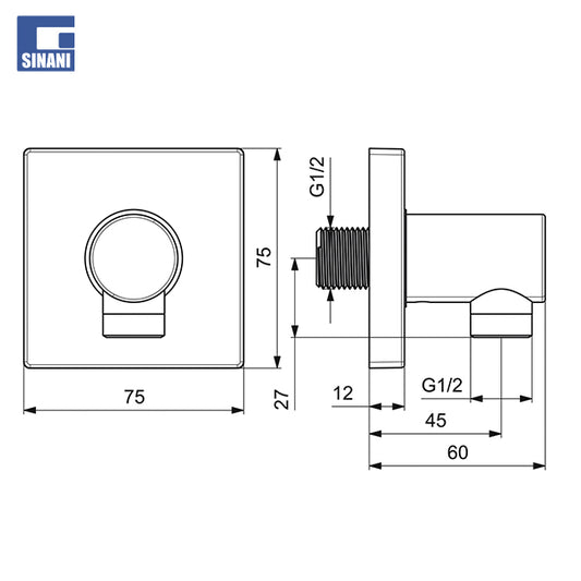 Jashtë stoku. Vijnë së shpejti.Rubinetë këndore me mbajtëse shatafi katrore