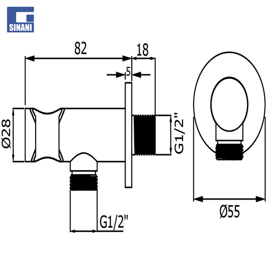 Bërryl rrethor me mbajtëse koke dushi me valvol moskthimi