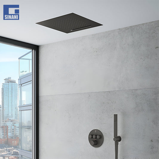 Kokë dushi inkaso tavanor inoksi katrore 34x34 e zezë mat