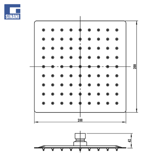 Kokë dushi inkaso tavanor katrore 43x43 me dy dalje
