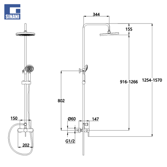 Kollonë dushi inoksi detar Simius