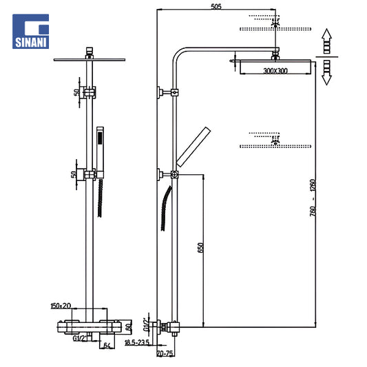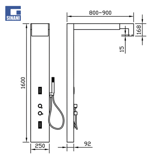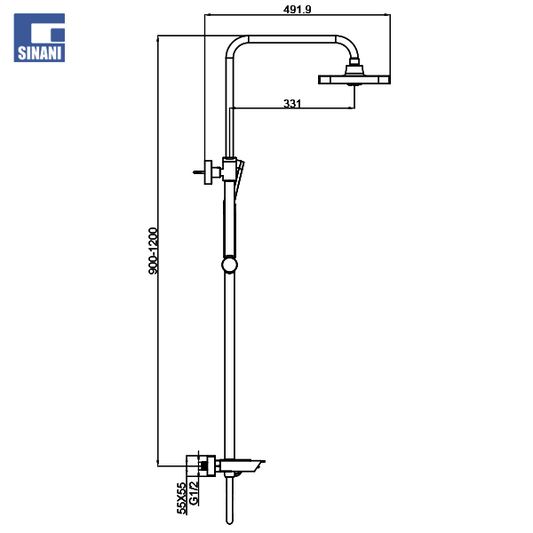 Kollonë dushi termostatike DAX me tub katror