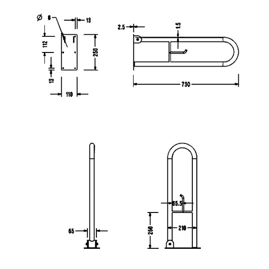 Mbështetese për persona me aftësi të kufizuara me mbajtese letre higjienike per WC
