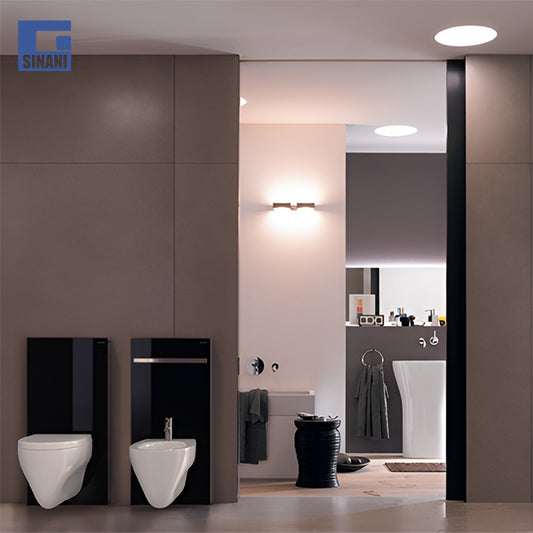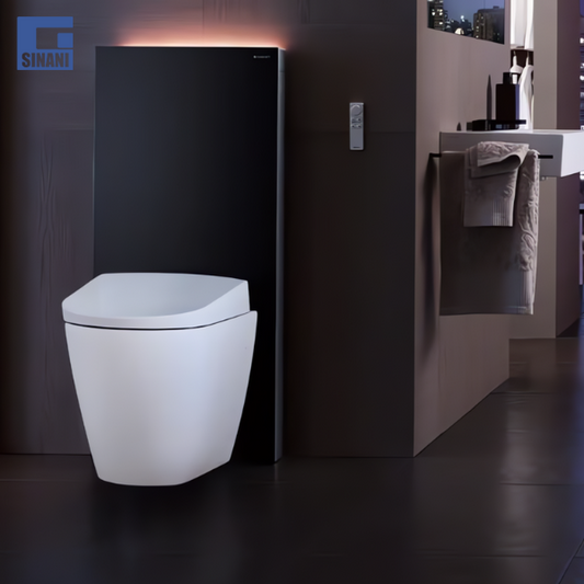 Jashtë stoku. Vijnë së shpejti.Modul Monolith për wc në dysheme xham i zi me kornizë alumini