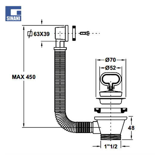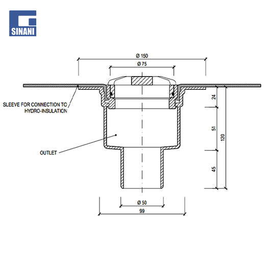 Pilete dushi MG DN40/50 me fllanxhe plastike per hidroizolim (pjesa e poshtme)