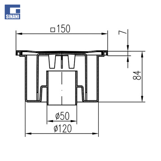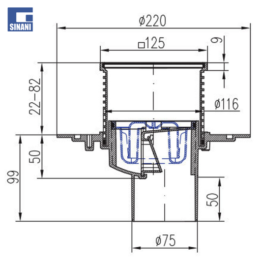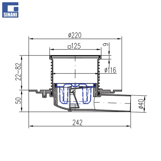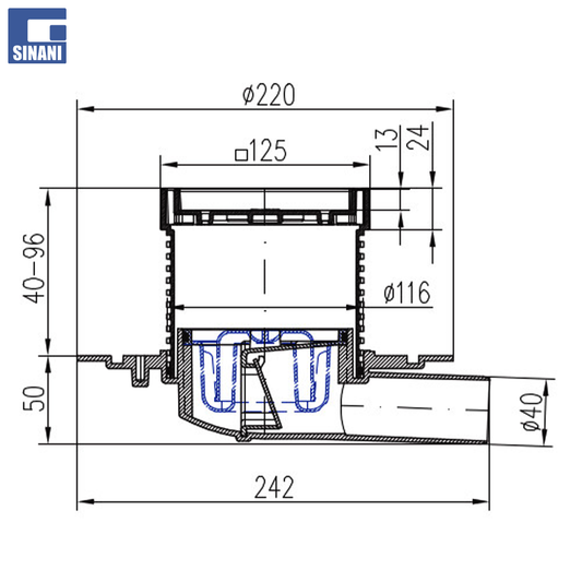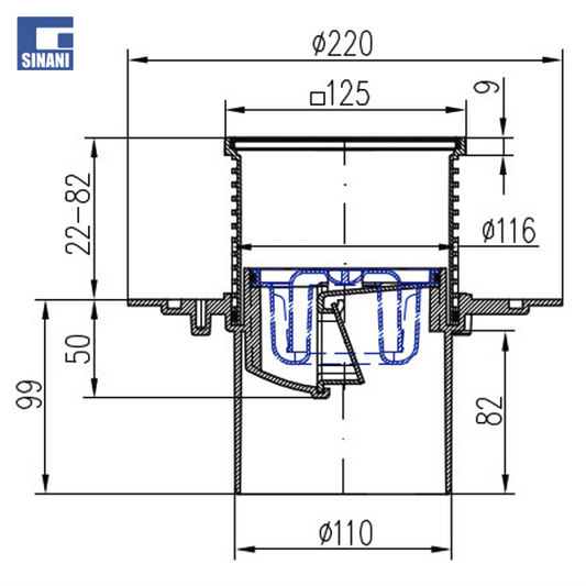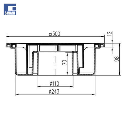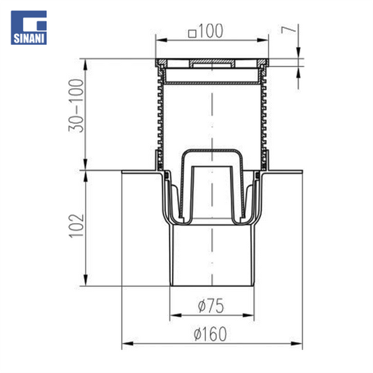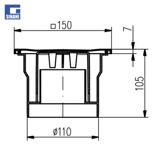 Piletë dyshemeje vertikale D110 me grilë inoksi Sun