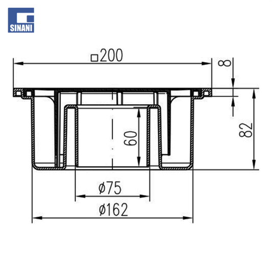 Piletë dyshemeje vertikale Ø75, 200x200 mm