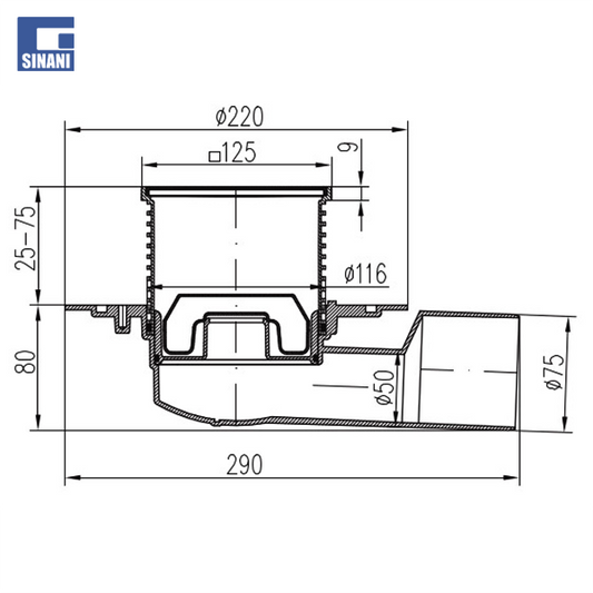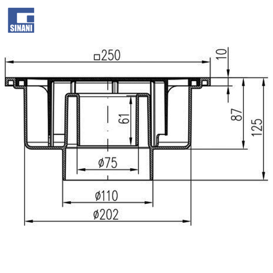 Piletë dyshemeje vertikale D 75/110, 250x250 mm