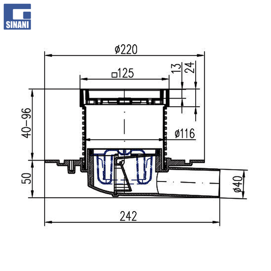 Piletë dyshemeje universale horizontaleDN 50/95 me grilë inoksi