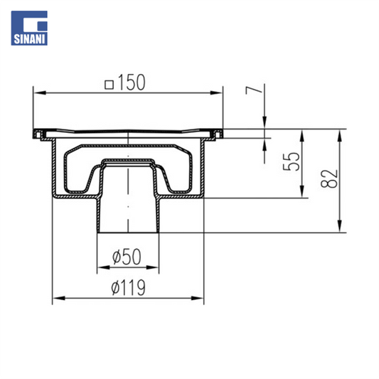Piletë dyshemeje vertikale Ø50/55 me grilë inoksi Sun