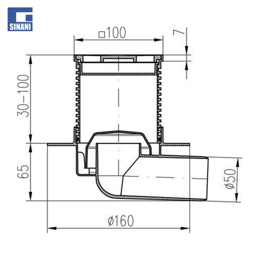Piletë dyshemeje universale horizontale Ø50/75 me fllanxhë dhe grilë inoksi Ceramica