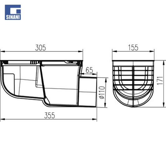 Piletë shiu me pusetë standarte Ø110 me dalje anësore