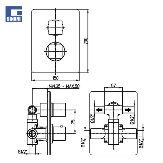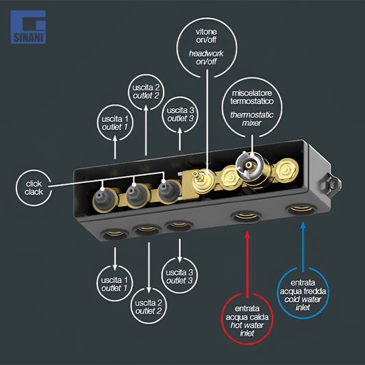 Grup dushi inkaso termostatik horizontal me 3 dalje Lineabox