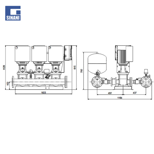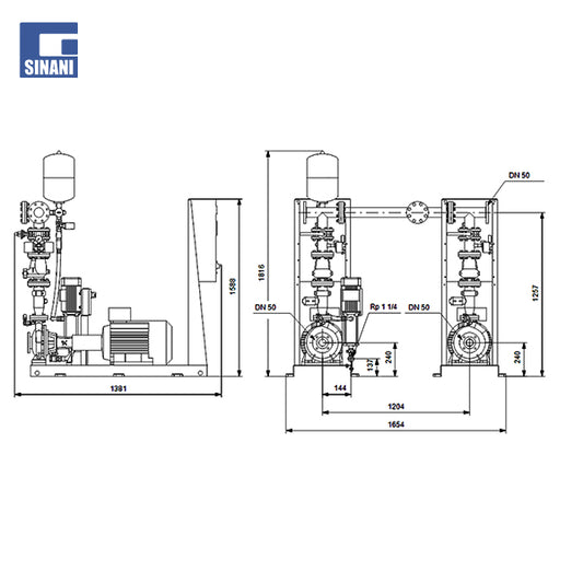 Grup motopompe me fllanxhe UNI70 me dy rubineta horizontale
