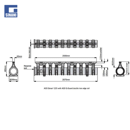 Kanal shkarkimi plastike me dalje te holle lart ACO Qmax 225