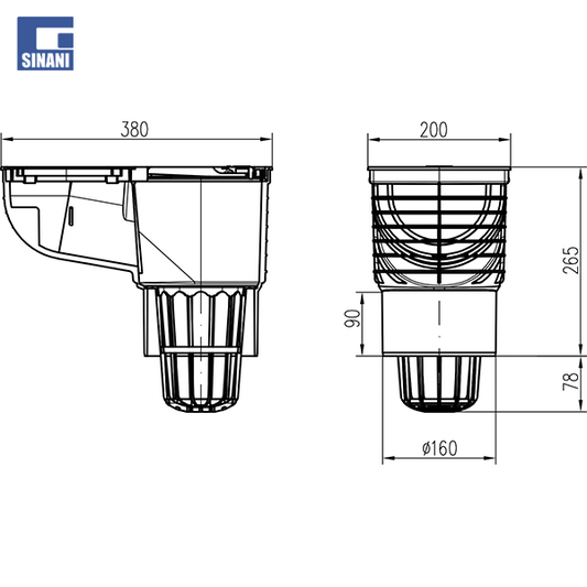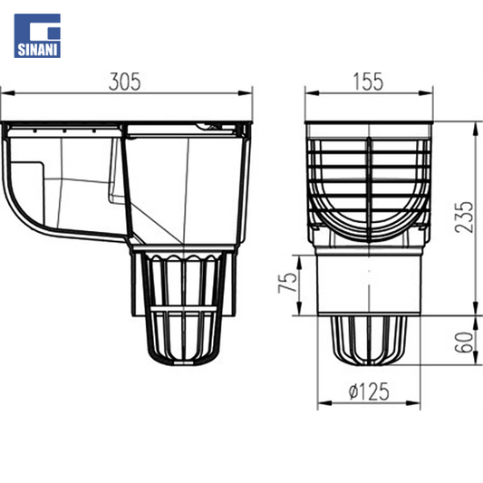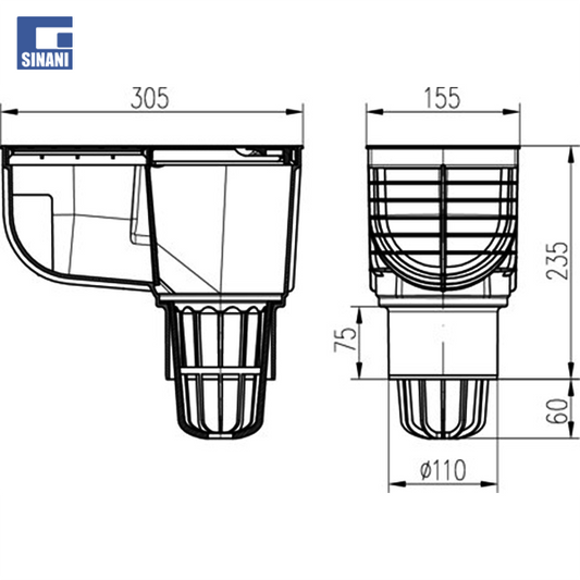 Piletë shiu me pusetë standarte Ø160 V me grilë gize