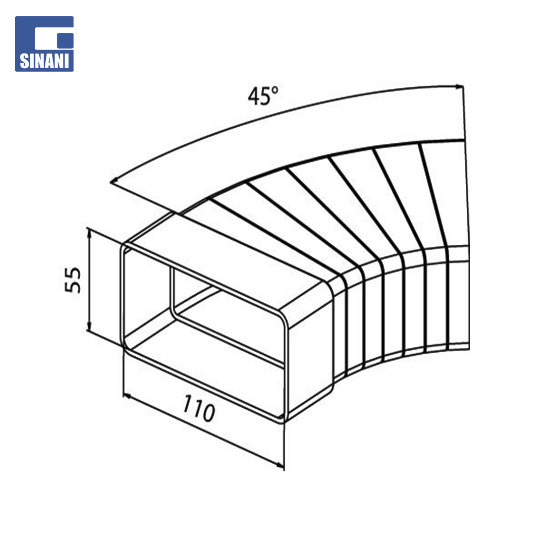 Bërryli këndor është projektuar për lidhjen e tubave të sheshtë në sistemet e ventilimit, ku siguron nje lidhje të qëndrueshme.