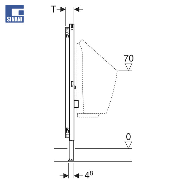 - Thellësia e pllakës së këmbës është e përshtatshme për instalim në profilet U UW 50 dhe UW75 dhe Shina të sistemit Geberit Duofix