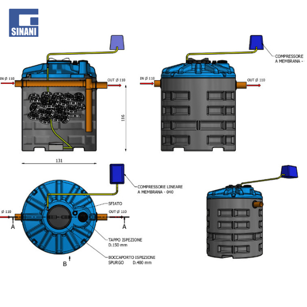 Në përputhje me UNI EN 12566-3 dhe Dekretin Legjislativ nr. 152/2006.