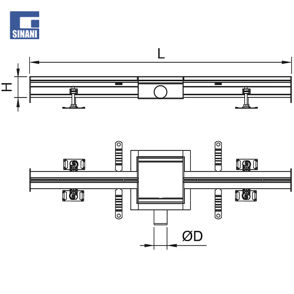Kanal inoksi Slot 8 me fllanxhe, me dalje DN50 ne qender, me guarnicion gome