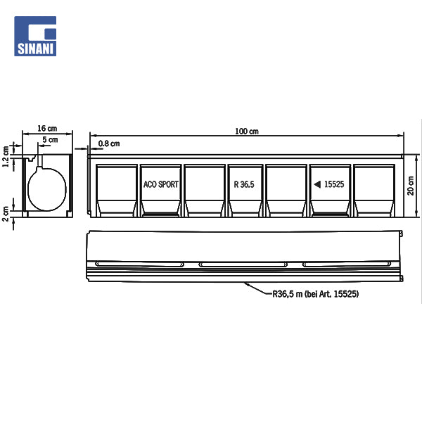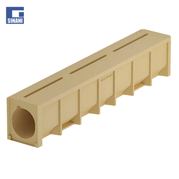 Kanalet e çarjeve të sistemit të kullimit ACO SPORT® me gjerësi të qartë prej 125 janë projektuar në përputhje me rregulloret e IAAF dhe DIN 18035 Pjesa 3. Si të ashtuquajturat kanale të profilit të zbrazët, elementët e sistemit përputhen me rregulloret e IWR. Rregullat aktuale të FIFA-s për kullimin dhe kufijtë e fushës gjithashtu merren parasysh.