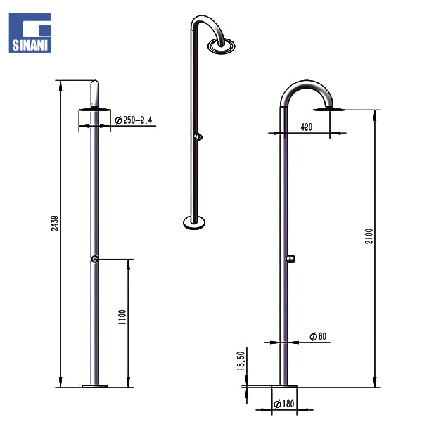 Dush inoksi Sined me cilësi të lartë, vetëm me ujë të ftohtë për pishina, kopshte dhe plazhe.