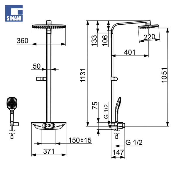- Rubineti i dushit është i disponueshëm në dy ngjyra: i bardhë dhe gri.