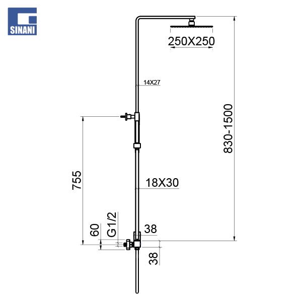 Kollonë dushi Trento me kokë katrore me 2 funksione