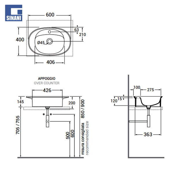 - Përmasat e lavamanit - 60 x 40 x H14,5 cm