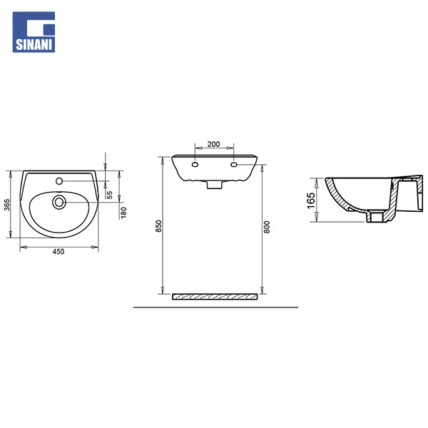- Përmasat e lavamanit me gjyskollonë - 505 x 405 x H475 mm