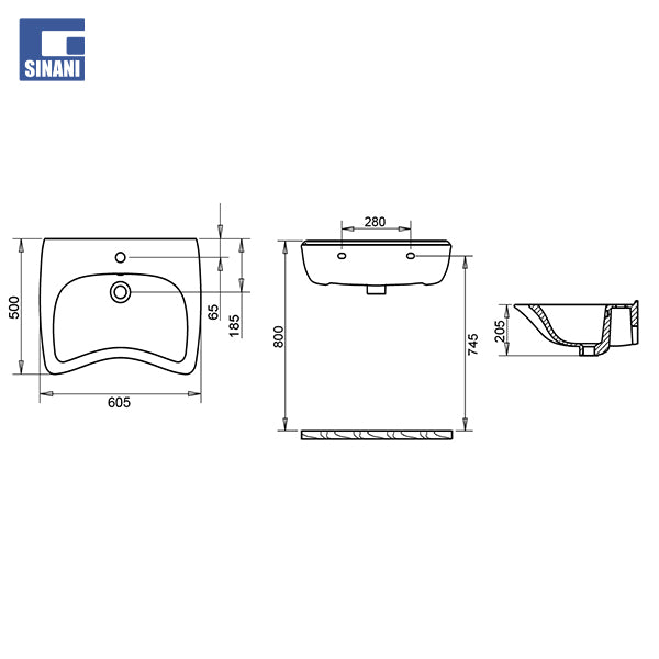 - Përmasat - 605 x 500 x H205 mm