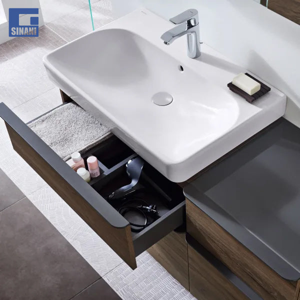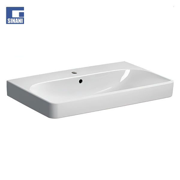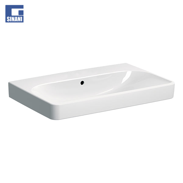 Lavamani prej qeramikë, drejtkëndësh, Smyle Square nga Geberit. Me dizajnin e saj bashkëkohor dhe linjat e zbukuruara, seria e Geberit Smyle krijon një ambient relaksues dhe pozitiv dhe sjell harmoni dhe lehtësi në tualet. Me një ndjenjë të qartë rregulli dhe përdorim efikas të një dhome, Smyle arrin nivelin më të lartë të komoditetit në tualet nga çdo situatë strukturore.