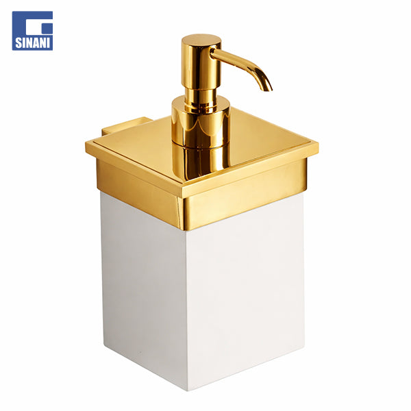 Shtoni një prekje elegance dhe funksionaliteti në tualetin tuaj me këtë mbajtëse sapuni likuid me përfundim ari, e dizajnuar për ambiente moderne dhe klasike. Koleksion bronzi në përfundim ari dhe gotë ngjyrë të bardhë mat Acriltech. Aksesor luksoz dhe praktik për përdorim të përditshëm. Mbajtësja metalike garanton qëndrueshmëri dhe rezistencë afatgjatë.