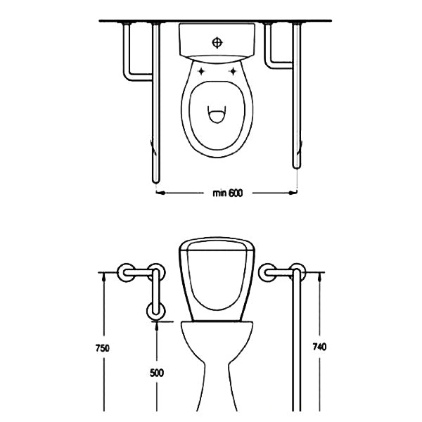 Mbështetese këndore 90° për persona me aftësi të kufizuara për WC