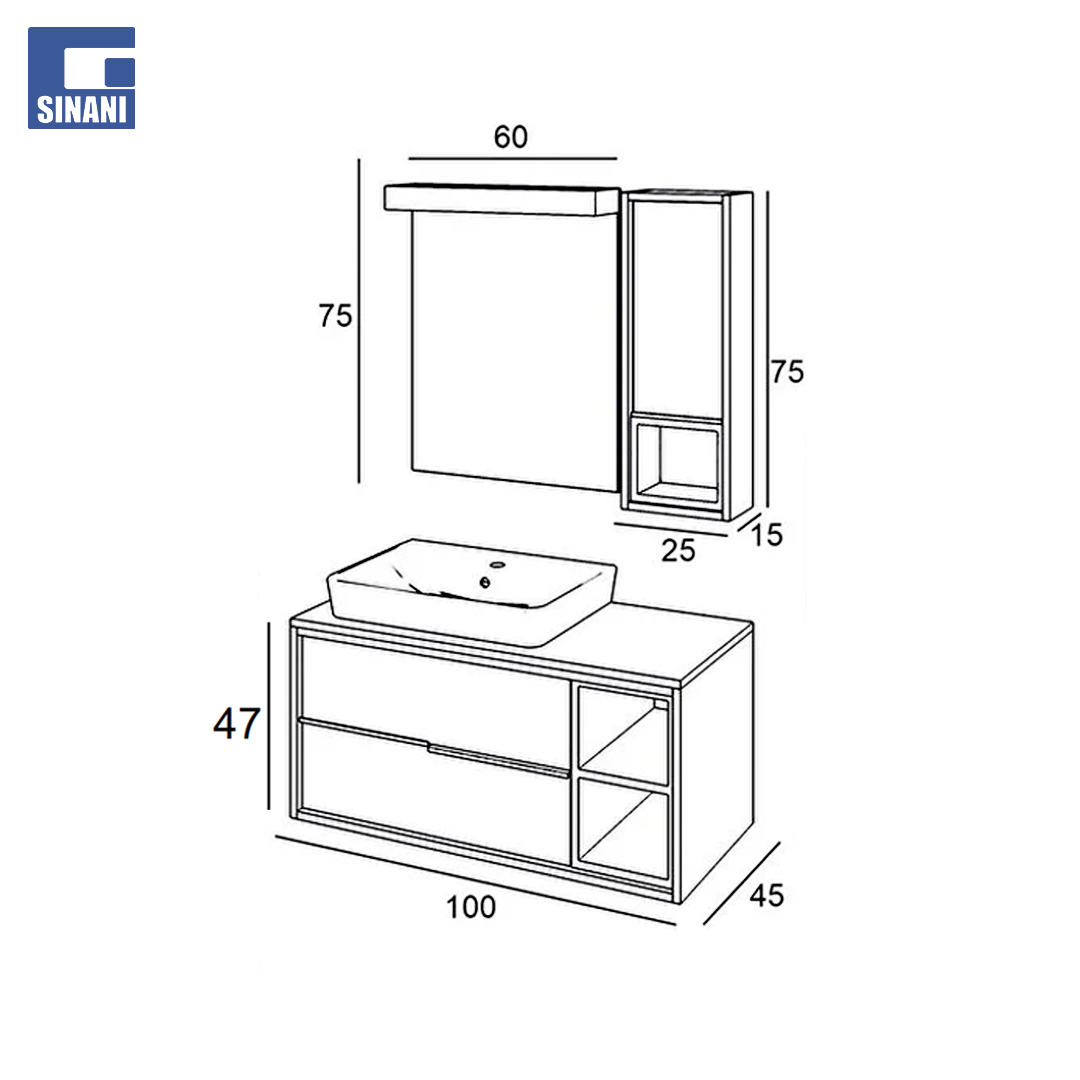 - Përmasat e mobiljes : 100 x 45 x 47 cm