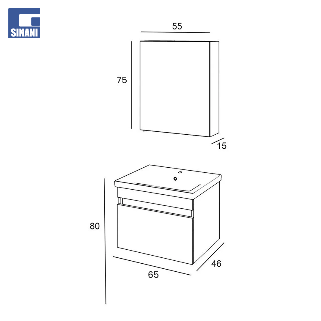 - Përmasat e pasqyrës : 55 x 65 x 15 cm