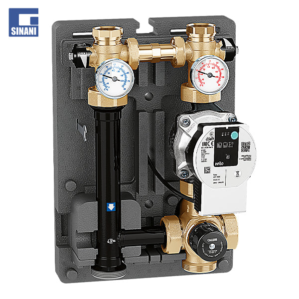 Njësia rregulluese termostatike kryen funksionin e mbajtjes së temperaturës së rrjedhjes konstante, në vlerën e caktuar, për mjedisin e shpërndarë në një sistem me temperaturë të ulët për panelet rrezatuese të dyshemesë ose radiatorëve. E kompletuar me pompë me efikasitet të lartë, valvul përzierëse termostatike trekahëshe me sensor të integruar të temperaturës, matës të temperaturës së rrjedhjes dhe kthimit, valvula mbyllëse të qarkut sekondar dhe izolim të paraformuar të guaskës. Njësia është e kthyeshme, drejtimi i rrjedhjes mund të përmbyset nga e djathta në të majtë, varësisht nga kërkesat e instalimit.