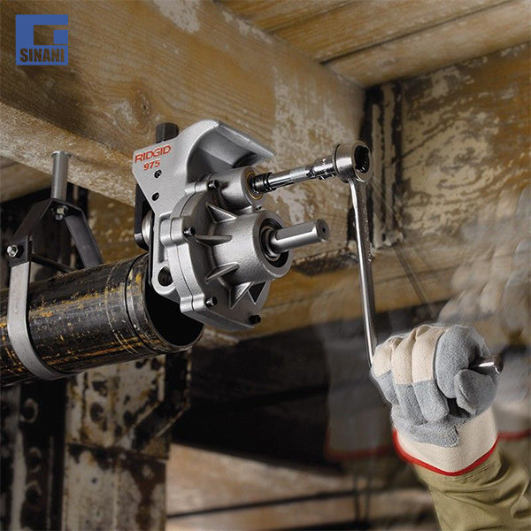 Makineri prerëse Model 975 Roll Groover e cila montohet në pajisjen Ridgid 300 Compact për punë prerjeje. Është projektuar gjithashtu për të rrotulluar manualisht kanalin në vend të tubit. Makineria prerëse 975 Roll Groover përfshin teknologji të re, të patentuar, të ndjekjes automatike për prerje dukshëm më të lehtë. Pavarësisht nëse po bëni prerje me fuqi makinerie apo manuale, matësi AutoTracking e mban tubin të lidhur automatikisht me makinerinë prerëse gjatë gjithë proçesit të prerjes. 975 Roll Groover gjithashtu përfshin një matës vendosjeje të përhershme të thellësisë për një konfigurim më të shpejtë dhe të përsëritshëm. Kur bëhet prerje me rul manual, reduktimi i ingranazheve prej 55% më i lartë i Roll Groover 975 do të thotë më pak forcë dore e nevojshme krahasuar me makineritë konkurruese prerëse manuale. Një konstruksion i fortë prej hekuri.
