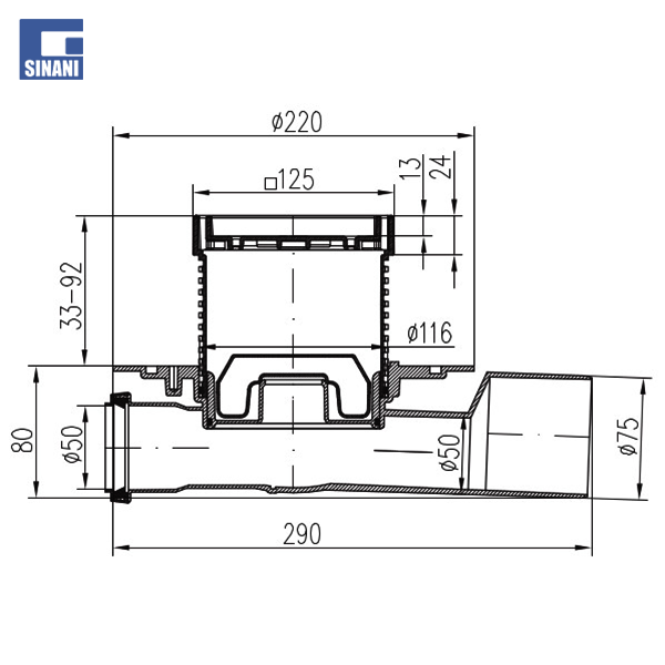 - Diametri i lidhjes së mbetjeve - Ø50, 75 mm