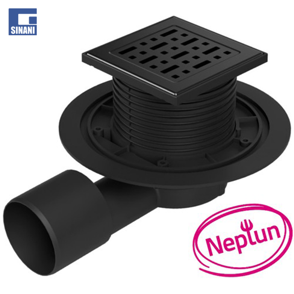 Piletë dyshemeje universale Neptun horizontale Ø50/75 me grilë Face dhe fllanxhë inoksi e zezë