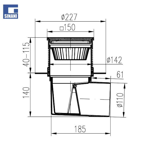 - Diametri i lidhjes së mbetjeve - Ø110