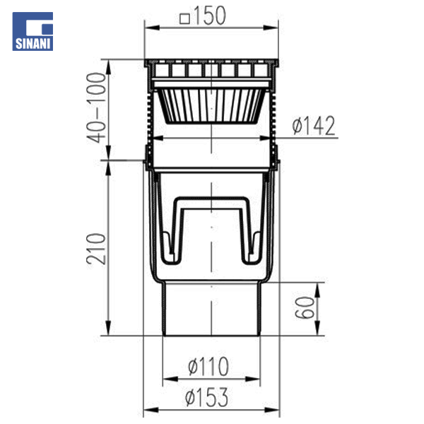 - Diametri i lidhjes së mbetjeve - Ø110 mm