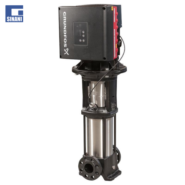 Pompë centrifugale vertikale, shumëfazore me konvertues frekuence të integruar. Koka dhe baza e pompës janë prej gize - të gjitha pjesët e tjera janë prej çeliku inox (EN 1.4301)