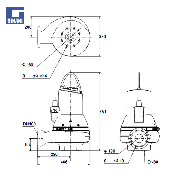 Pompë centrifugale jo-mbushëse, me një shkallë, e projektuar për trajtimin e ujërave të zeza, ujin e përpunuar dhe ujërat e zeza të papërpunuara. Pompa është projektuar për operime të ndërprera dhe të vazhdueshme në instalime nën ujë. Shtytësi efikas SuperVortex siguron kalimin e fibrave të gjata dhe lëndëve të ngurta deri në 80 mm dhe është i përshtatshëm për ujërat e zeza me përmbajtje të lëndës së thatë deri në 5%. Një sistem unik i montimit të kapëseve prej çeliku të pandryshkshëm mundëson çmontimin e shpejtë dhe të lehtë të pompës nga njësia motorike për shërbim dhe inspektim. Nuk kërkohen mjete speciale.