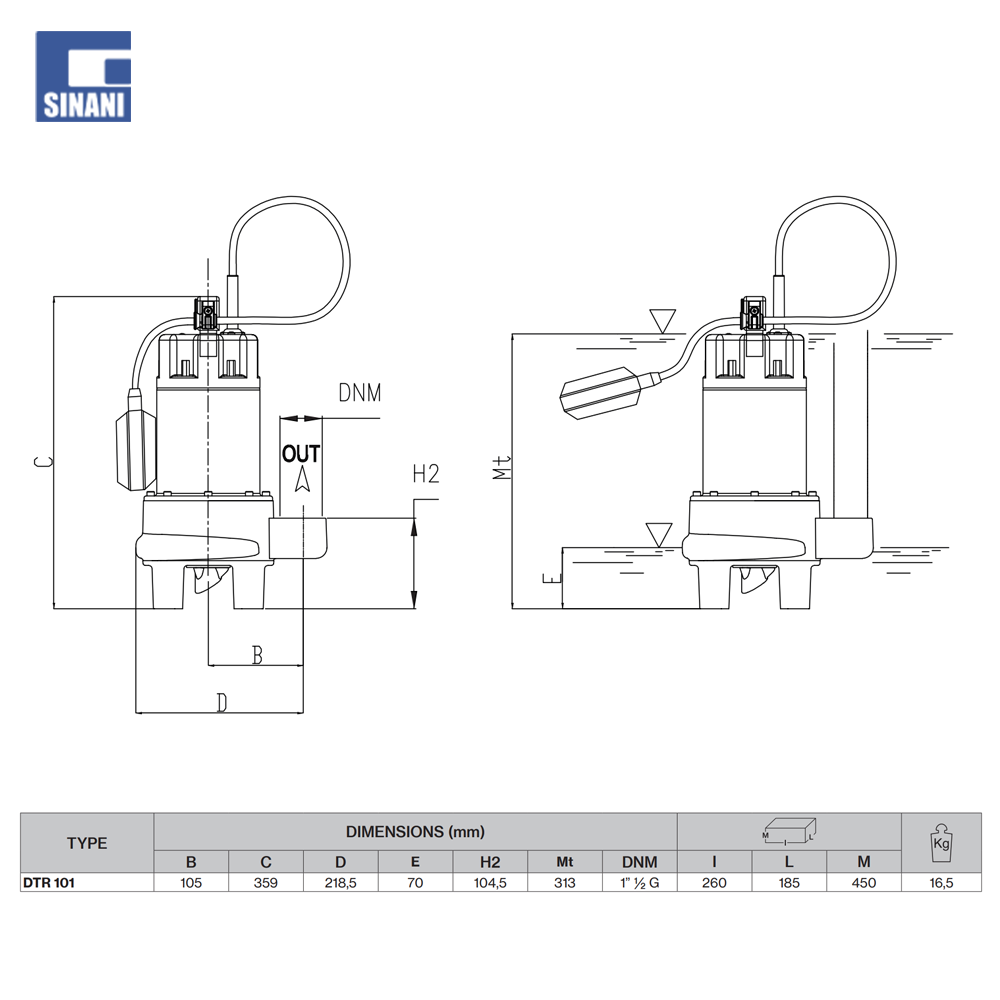 Pompë kullimi me shtytës të hapur e karakterizuar nga koka në raport me llojin dhe madhësinë e makinës. Versioni njëfazor me kondensator të integruar dhe mbrojtës termik mund të pajiset me një çelës notues.