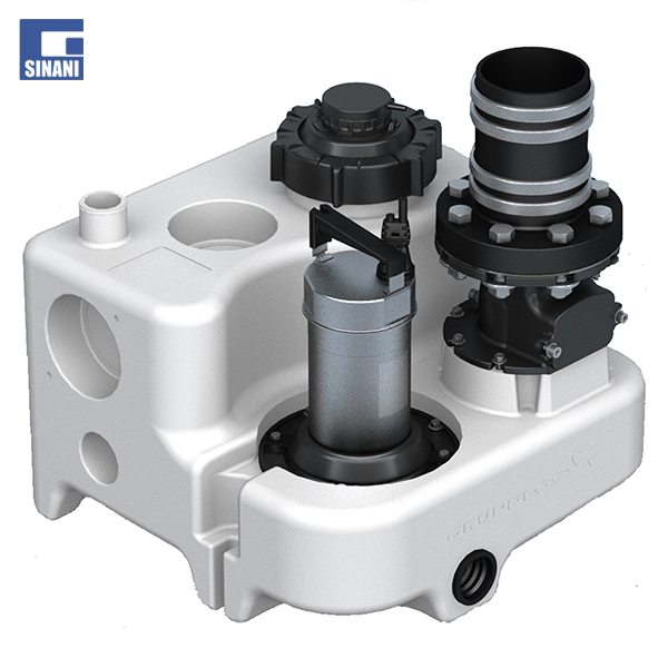 Furnizuar si njësi e plotë e gatshme për instalim, Multilift përbëhet nga një rezervuar grumbullues plotësisht i integruar me pompë dhe motor zhytës, valvulë kundër kthimit, përshtatës shkarkimi me lidhje fleksibël DN100 të montuar në rezervuarin e grumbullimit dhe një kontrollues me kabllo paraprakisht përfshirë. një sensor niveli. Rezervuari i grumbullimit i integruar plotësisht ka të gjitha portat e nevojshme për lidhjen e tubit të hyrjes në lartësi 180 mm dhe 250 mm, tubin e ventilimit DN50 dhe një pompë diafragme që funksionon manualisht (aksesor). Depozita e grumbullimit përmban 7 priza hyrëse rreth formës së saj. Hyrja e pasme 2x DN100 me një vulë prizë, fole për hyrje në anët 2 x DN100, hyrje e sipërme DN100. 2x DN50 sipër dhe anash. Rezervuarët e grumbullimit të polietilenit pa korrozion me shumë ngritje janë rezistent ndaj gazit dhe erërave, si dhe i papërshkueshëm nga uji, reduktojnë ujin e mbetur dhe më pak sedimentim nga dizajni i pjesës së poshtme. Pompë me shtytës Vortex dhe një motor zhytës pa mirëmbajtje, dhomë vaji me mbushje fiziologjike vaji të padëmshme midis dy vulave të boshtit. Mbrojtja e motorit nëpërmjet ndërprerësit mbrojtës të motorit brenda kokës së pompës. Kontrolluesi LC220 me mikroprocesor është i pajisur me LED për të gjitha nevojat e monitorimit. Pompa dhe sensori janë të lidhur me kontrolluesin me kabllo dhe tub 4m ose 10m. Kablloja e furnizimit me energji elektrike është 1,5 m me prizë (përfshirë inverterin fazor për motorin 3fazor) Sensori i presionit me rezistencë piezo pa kontakt, i cili mbyllet brenda kabinetit, i monitoruar nga kontrolluesi. Tub presioni pa bllokim brenda rezervuarit pa pjesë të lëvizshme brenda ujërave të zeza. Kontrolluesi ofron monitorimin e funksionimit të pompës.