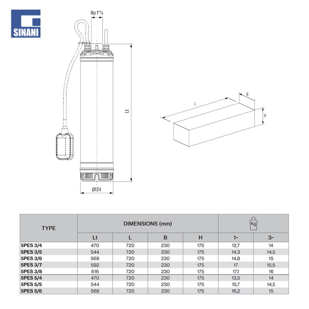 Pompa centrifugale me shumë shkallë zhytëse 5”. Të gjithë komponentët në kontakt me lëngun janë prej çeliku inox AISI 304. Veçanërisht i përshtatshëm për shpërndarjen e ujit për grumbullimin e ujërave të shiut, ujitje, shatërvanë, njësi larjeje. Versionet njëfazore kanë një kondensator të brendshëm dhe një motor mbrojtës termik.