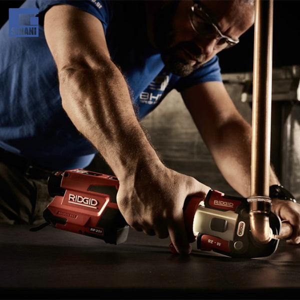 RP 251 është mjeti më i fundit inovativ brenda familjes së mjeteve kompakte të presimit Ridgid. Dizajni i saj ergonomike me këmbëzën e montuar përpara dhe levën SlimGrip lejon përdorimin me një dorë, duke e bërë të lehtë punën në linja dhe në hapësira të kufizuara. Merrni akses dhe performancë më të mirë falë karakteristikave të tilla si koka rrotulluese mbi 360°, LED-et e ndritshme dhe një motor pa furça i aftë të ofrojë më shumë se 60,000 cikle presimi. RP 251 mund të përdoret me të gjitha nofullat, rondelet dhe aktuatorët në serinë kompakte Ridgid dhe mund të presojë deri në 35 mm në bakër dhe çelik inox dhe deri në 32 mm në tuba PEX/tuba shumështresorë.