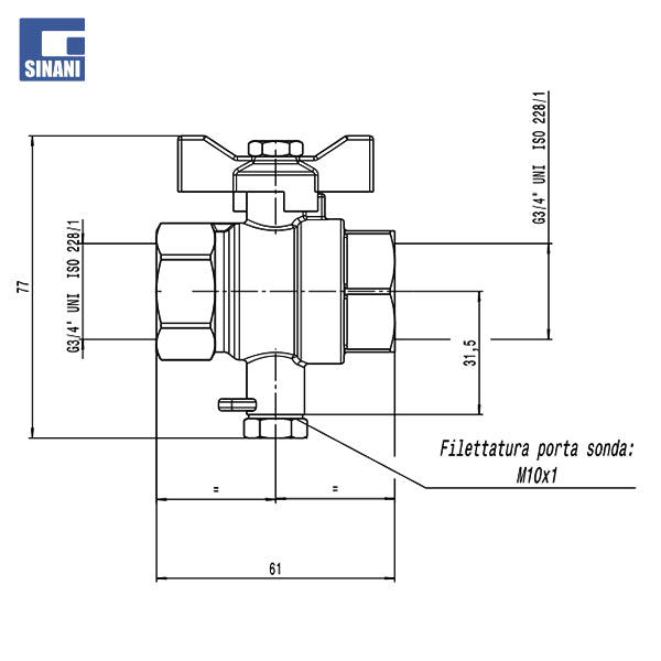 Valvul ndalimi sferik 3/4" F me lidhje për sondë M10x1