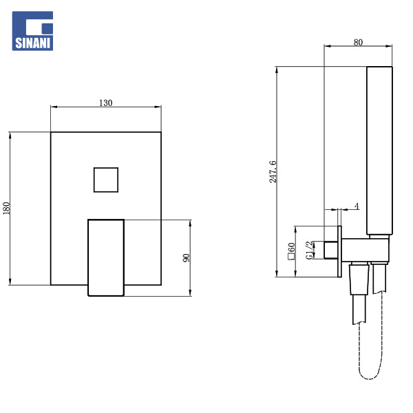 Set dushi inkaso Ventura me kokë dushi katrore 250 x 250 mm